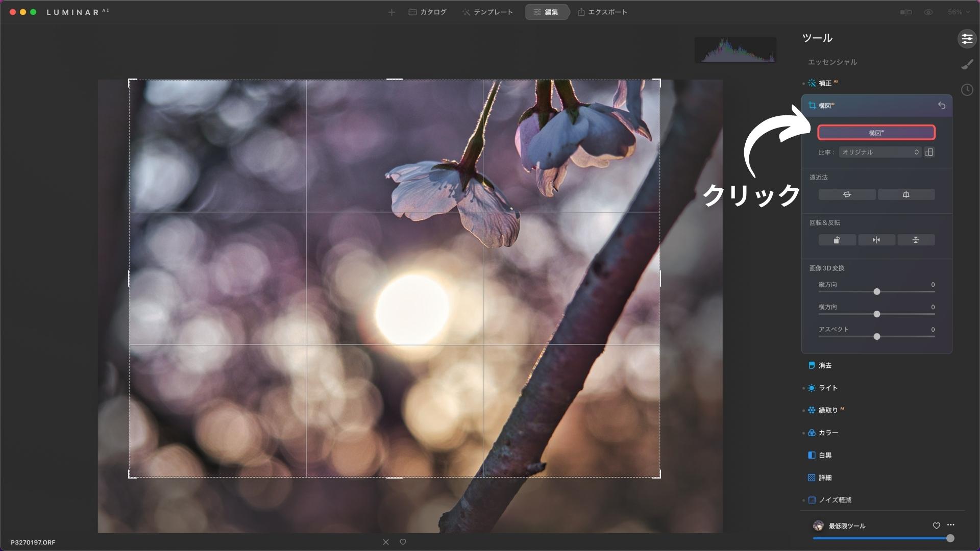 AIが自動で構図をトリミングしてくれる機能があるので、それも参考にします。