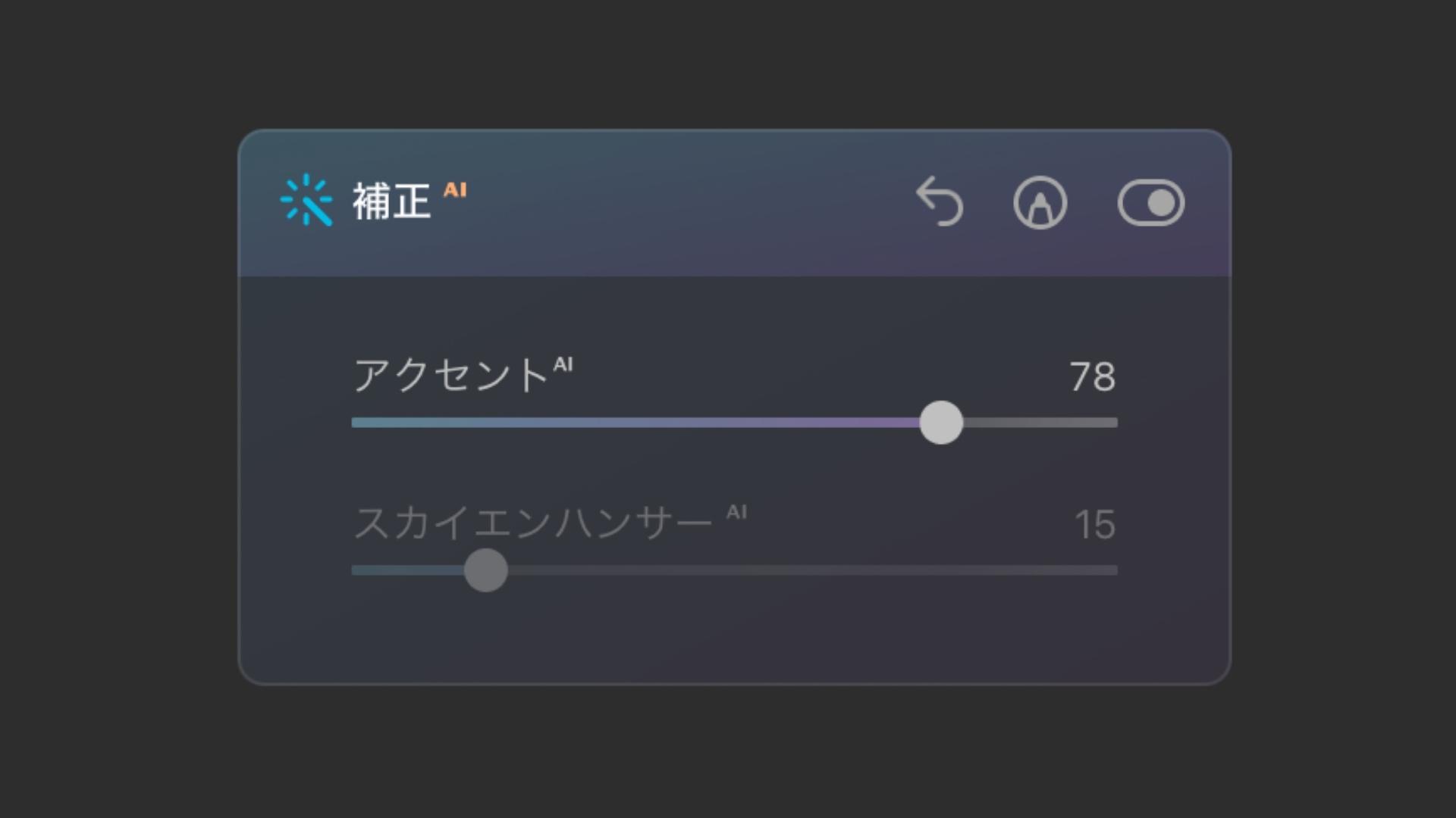 アクセントAI:全体を自動補正 スカイエンハンサーAI:空のみ自動補正