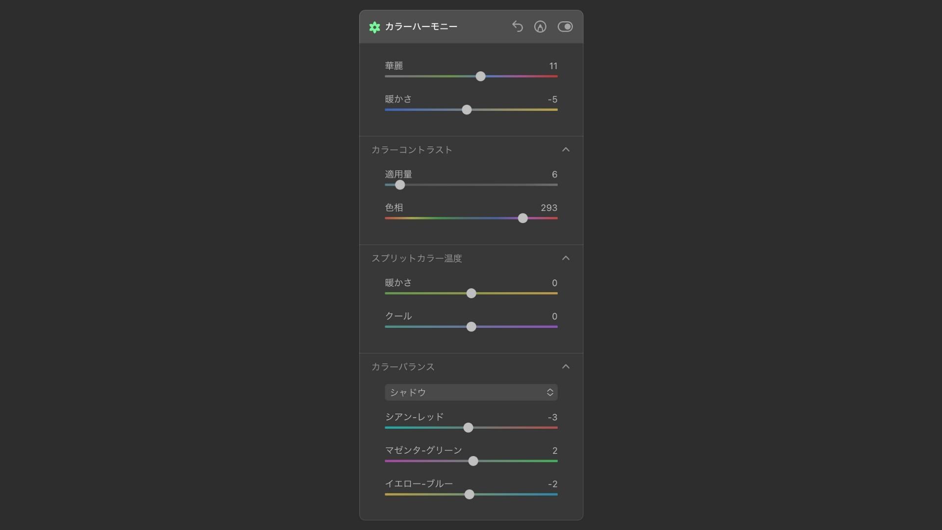 カラーハーモニーは、カラーの仕上げ調節にとても便利です。