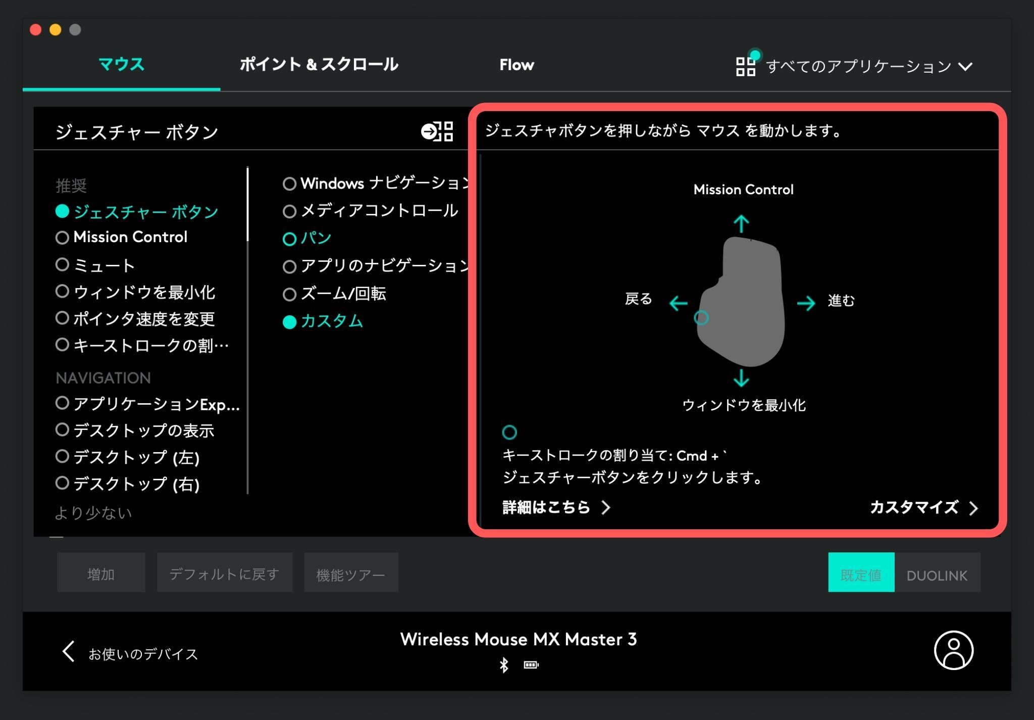 MX Master 3のボタンカスタムはこんな感じ
