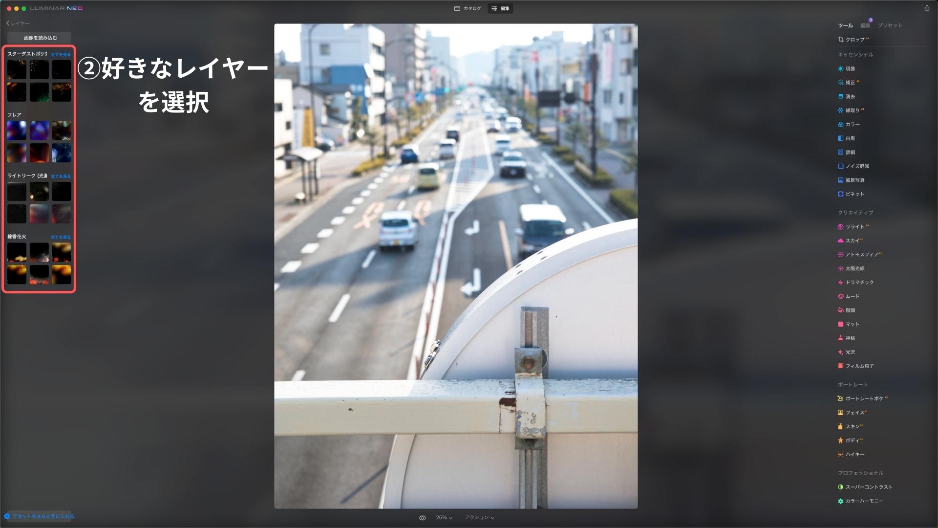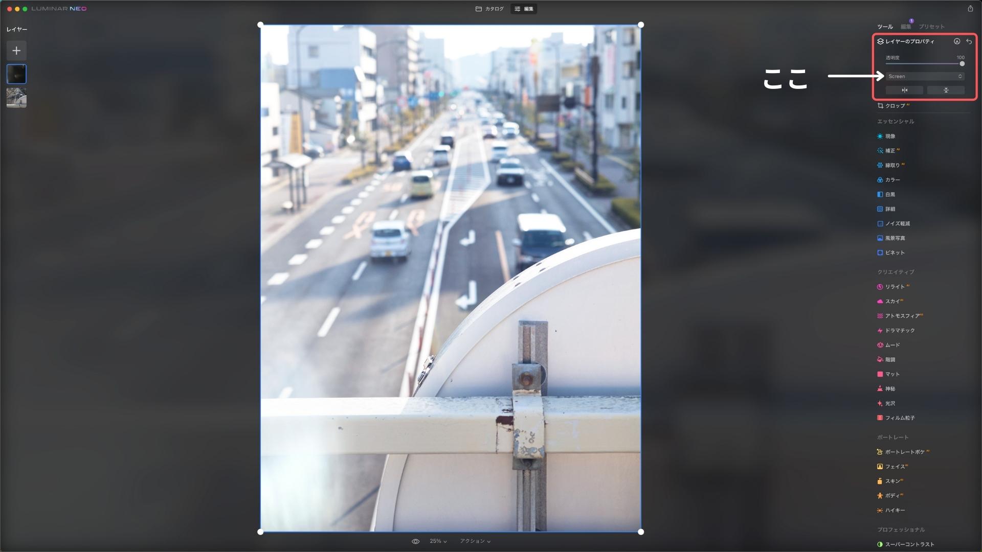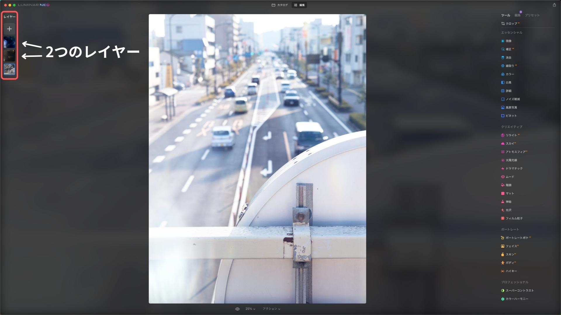 ルミナーNEOでは、複数のレイヤーを組み合わせることができます。