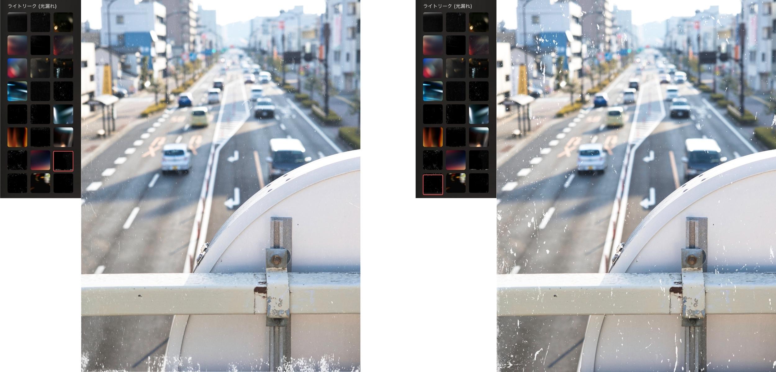 - デフォルトで入っている「ライトリーク」のレイヤーがおすすめ