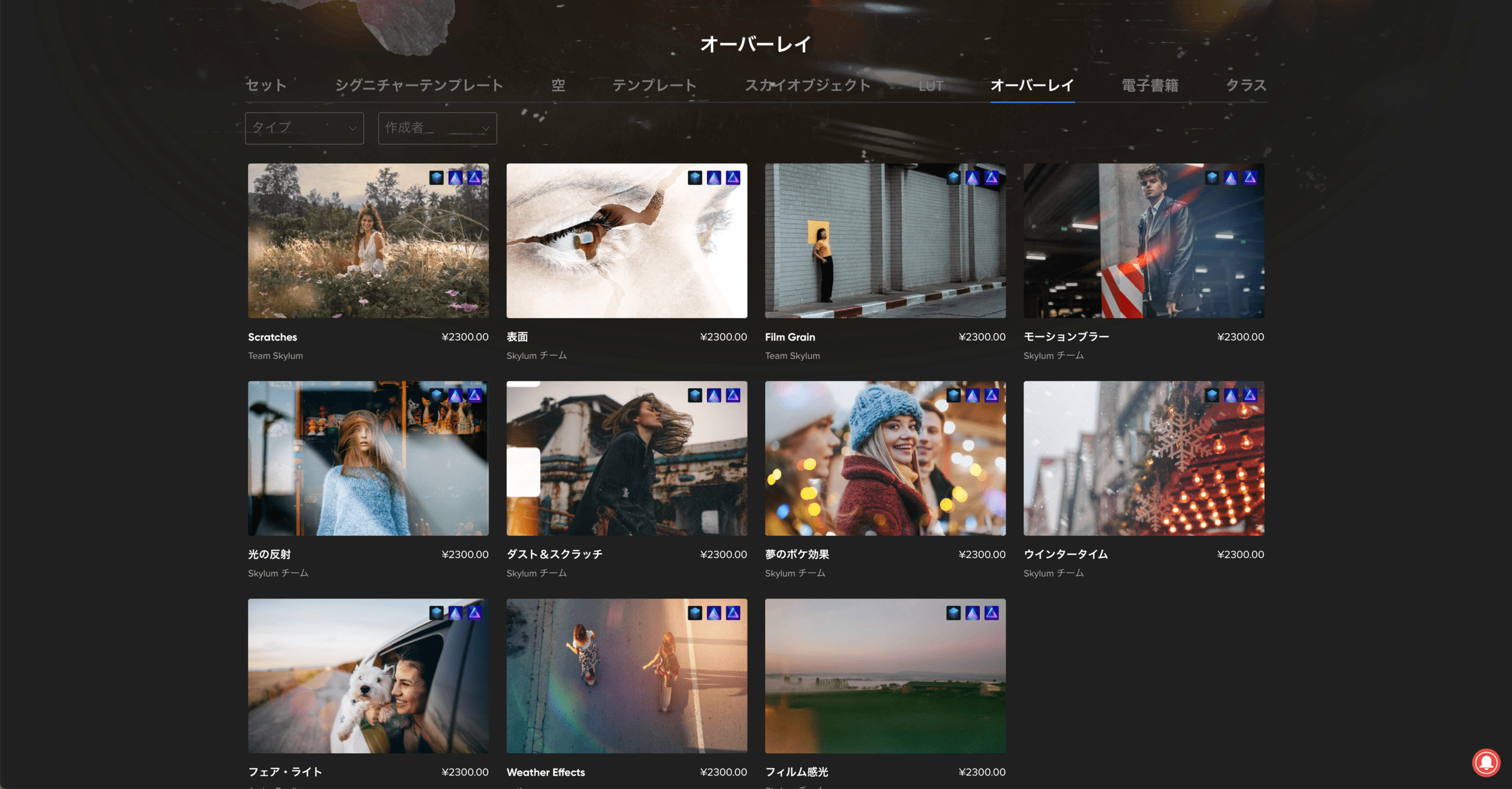 マーケットプレイスでは、「オーバーレイ」という項目で販売されています。
