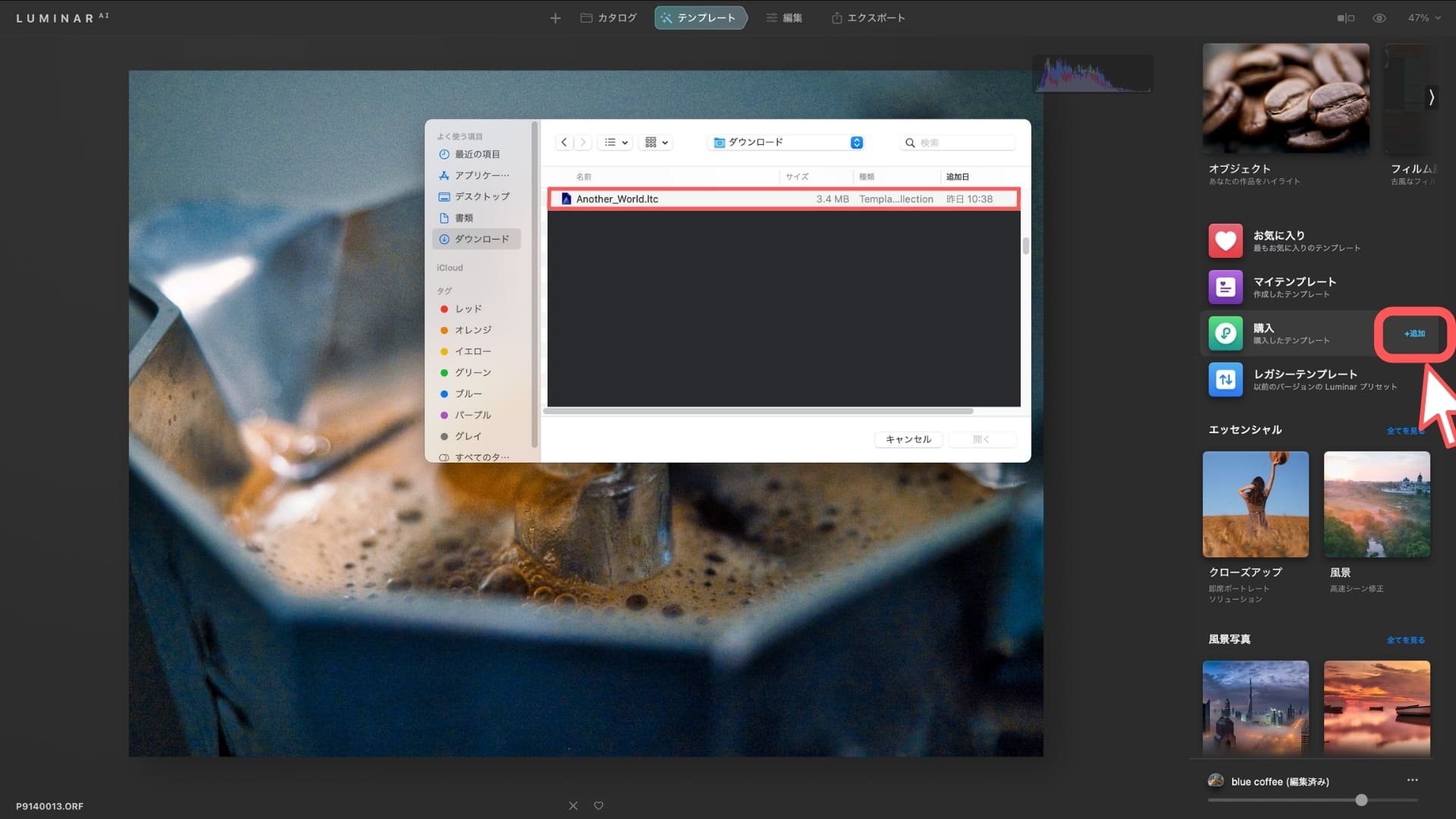 - ルミナーAIにダウンロードファイルを追加