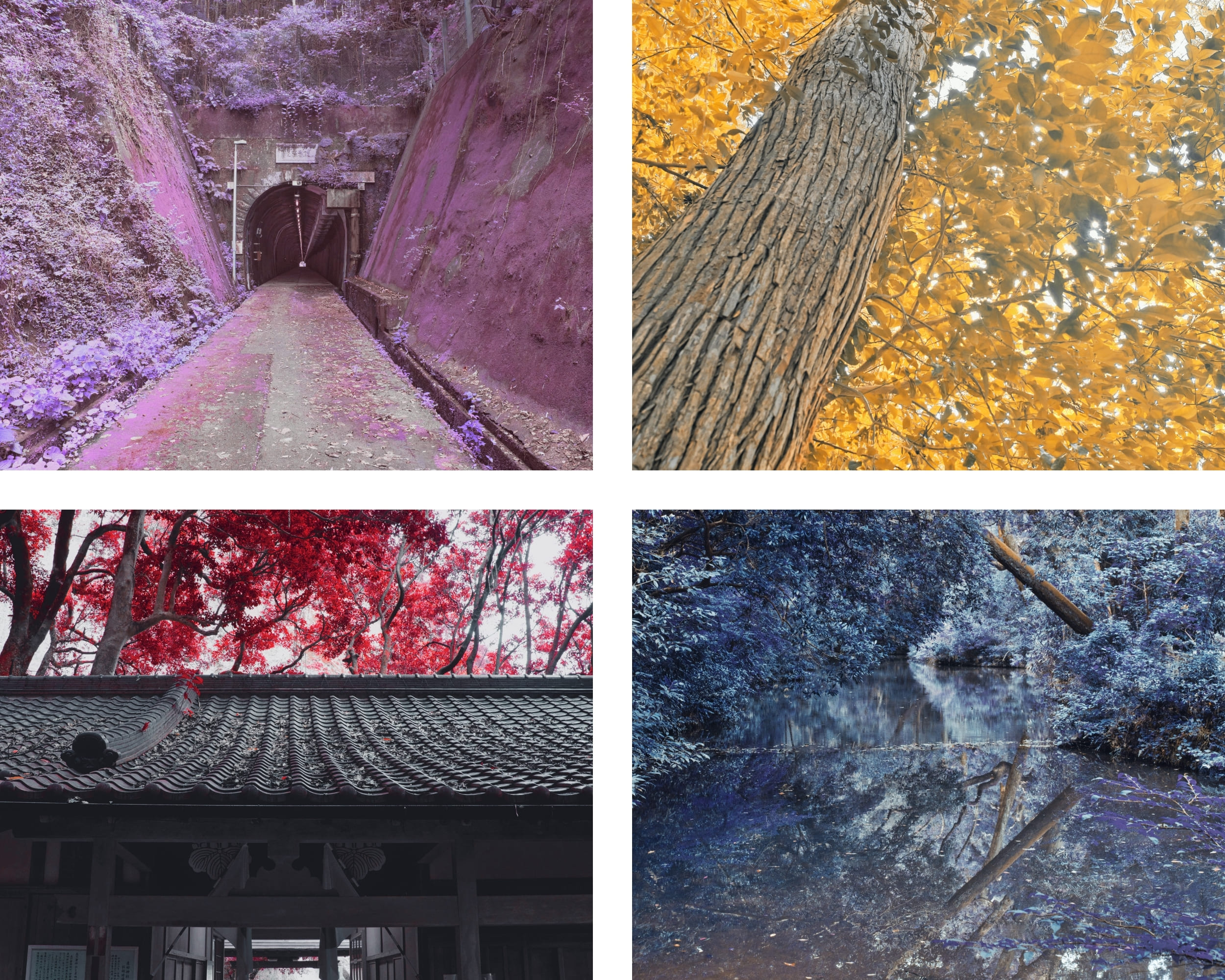緑の草や葉の色味がガラッと変化し、現実にはない写真になります。