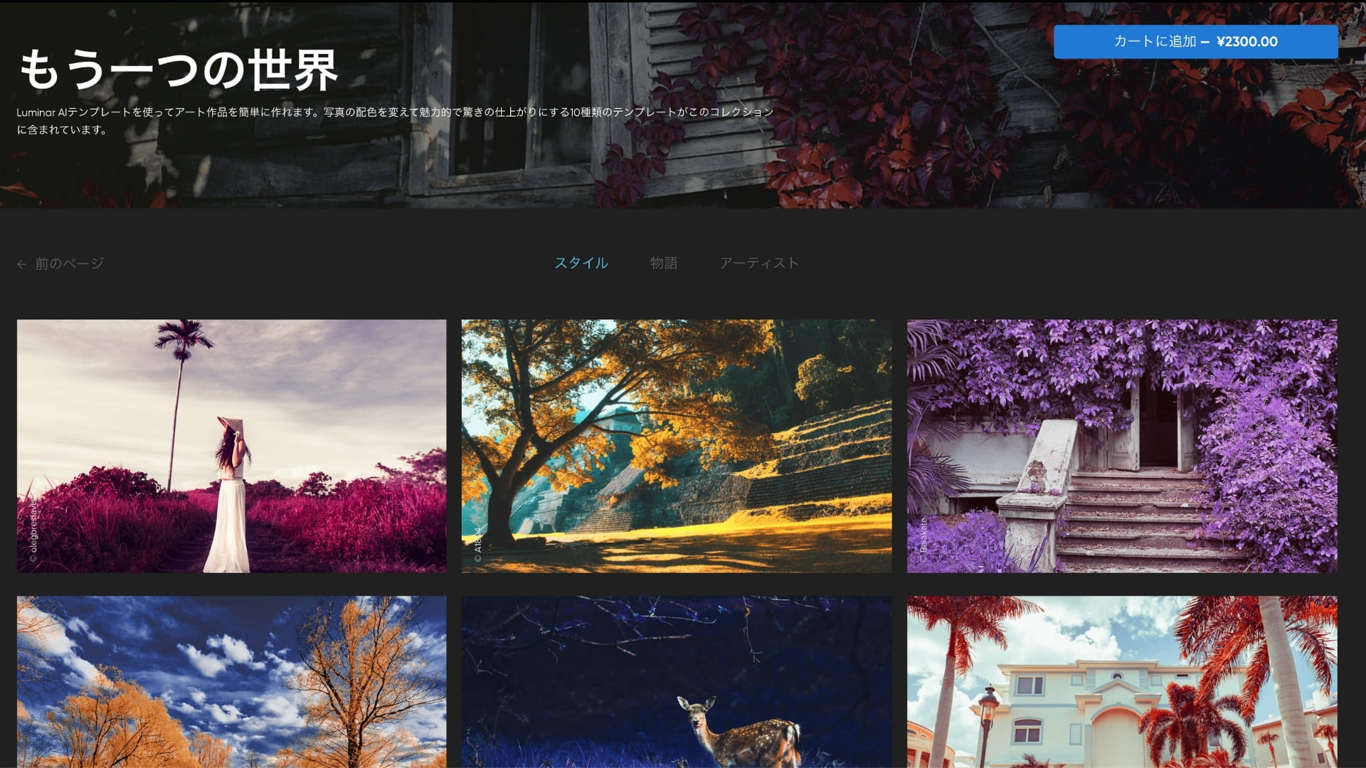 シグニチャーテンプレートの方は、有名な写真家によって作られ、そのテンプレートに対するストーリーなども掲載されています。