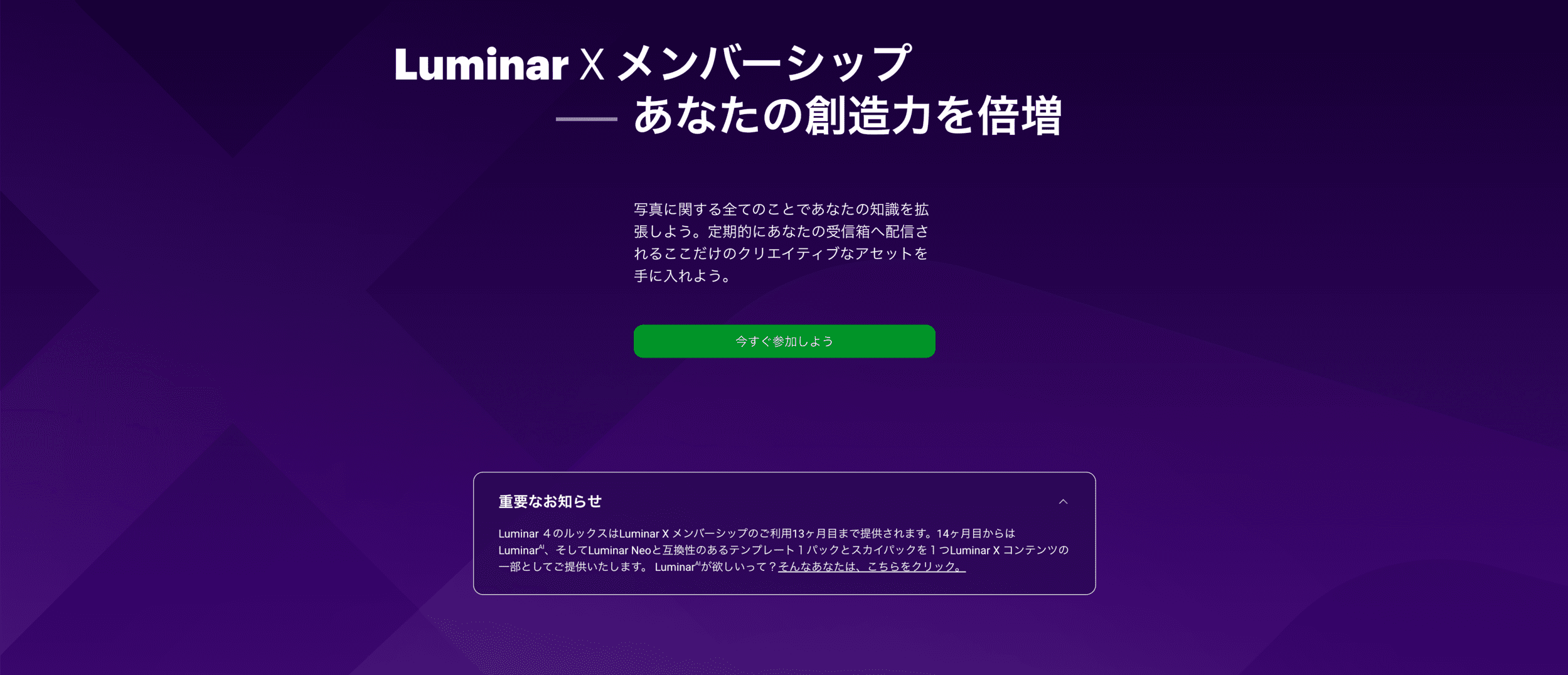 ルミナーでは、「Luminar X」というメンバーシップがあります。
