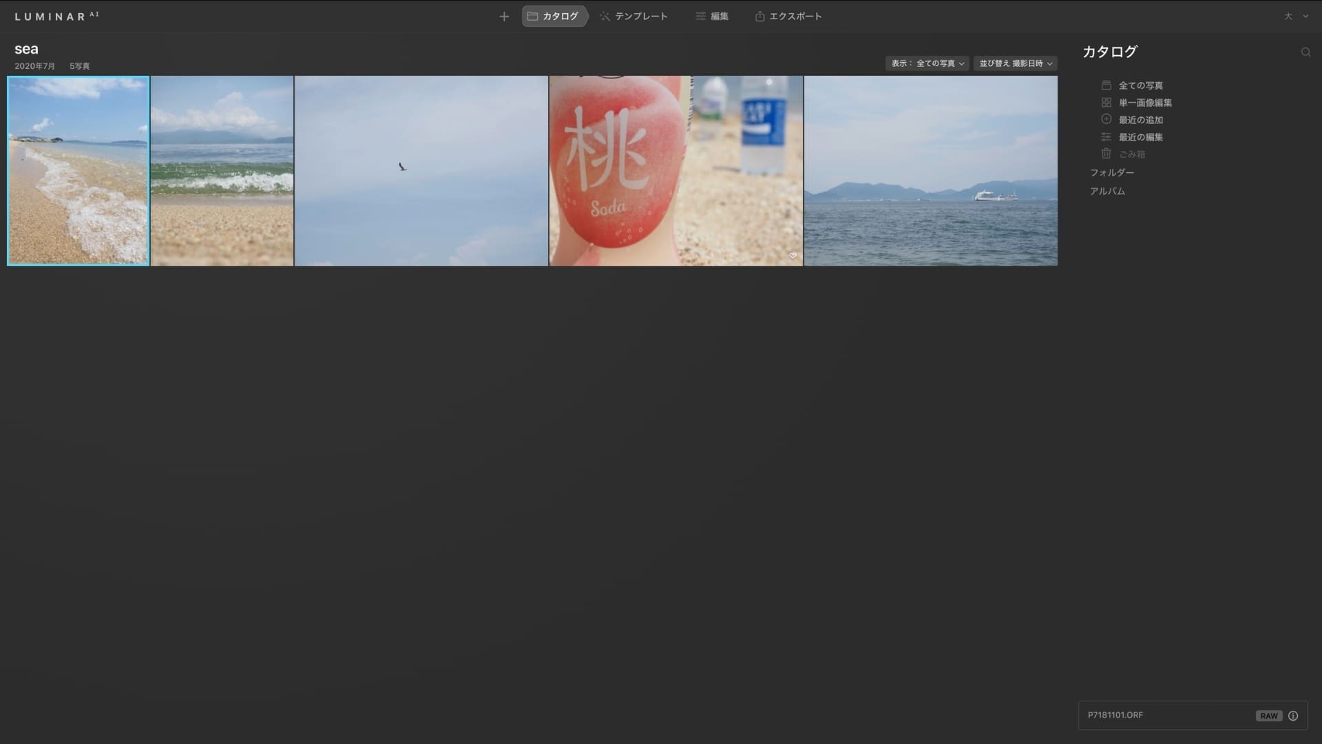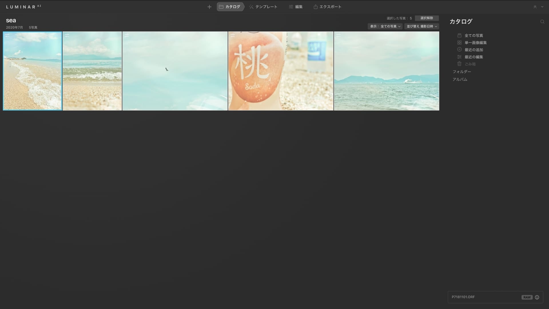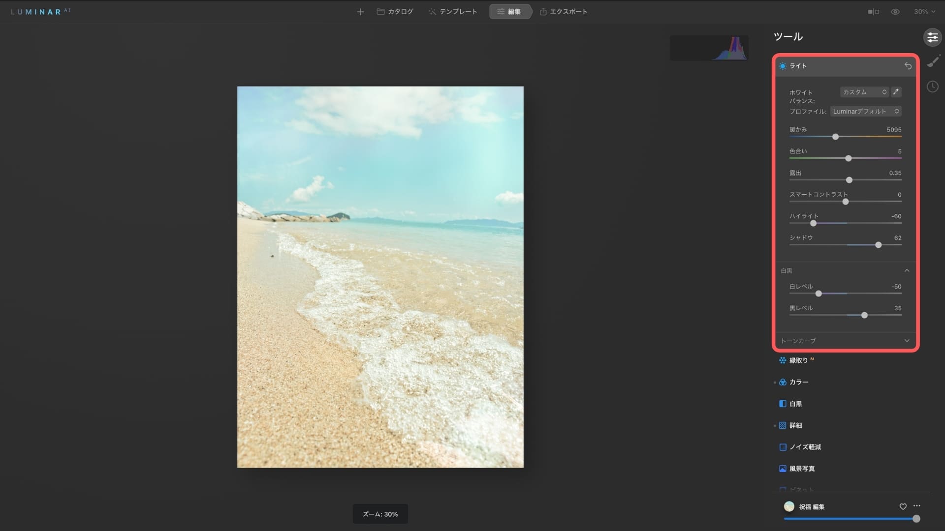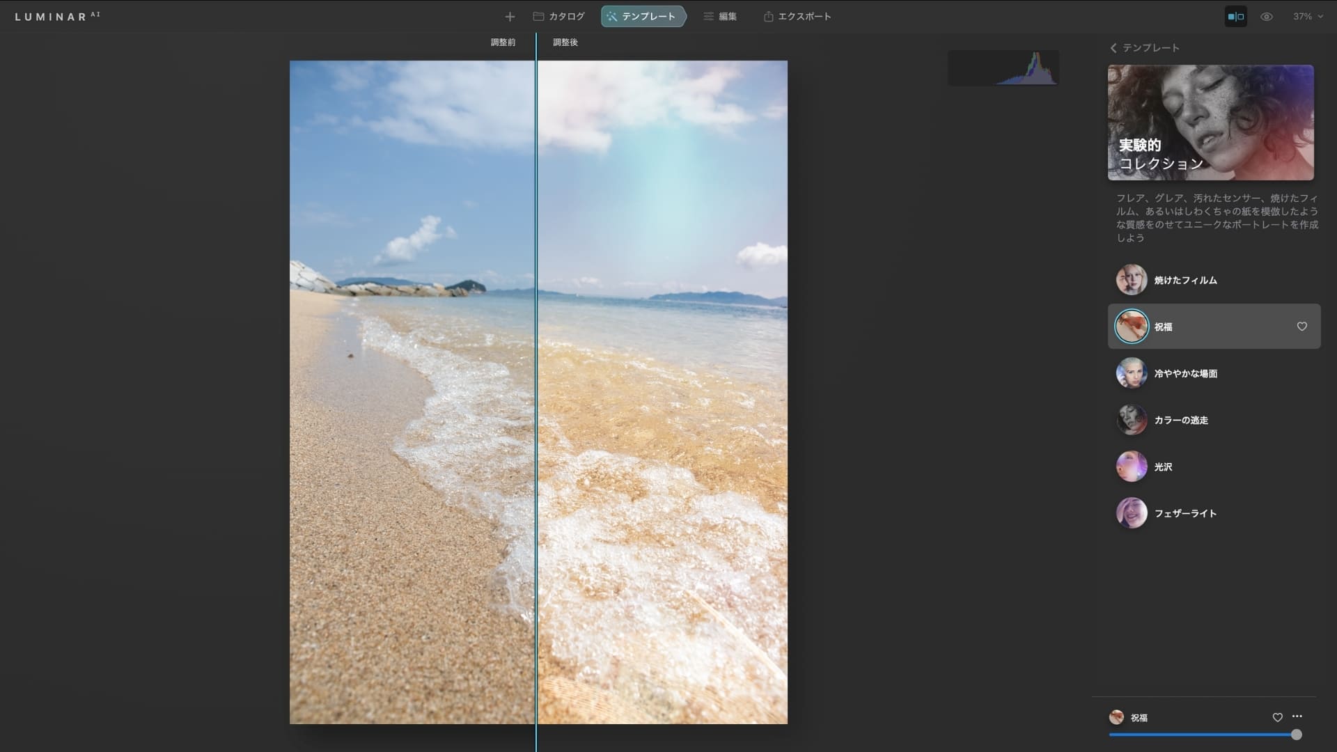 ルミナーAIでは、テンプレートを使うことで写真をいい感じにできます。
