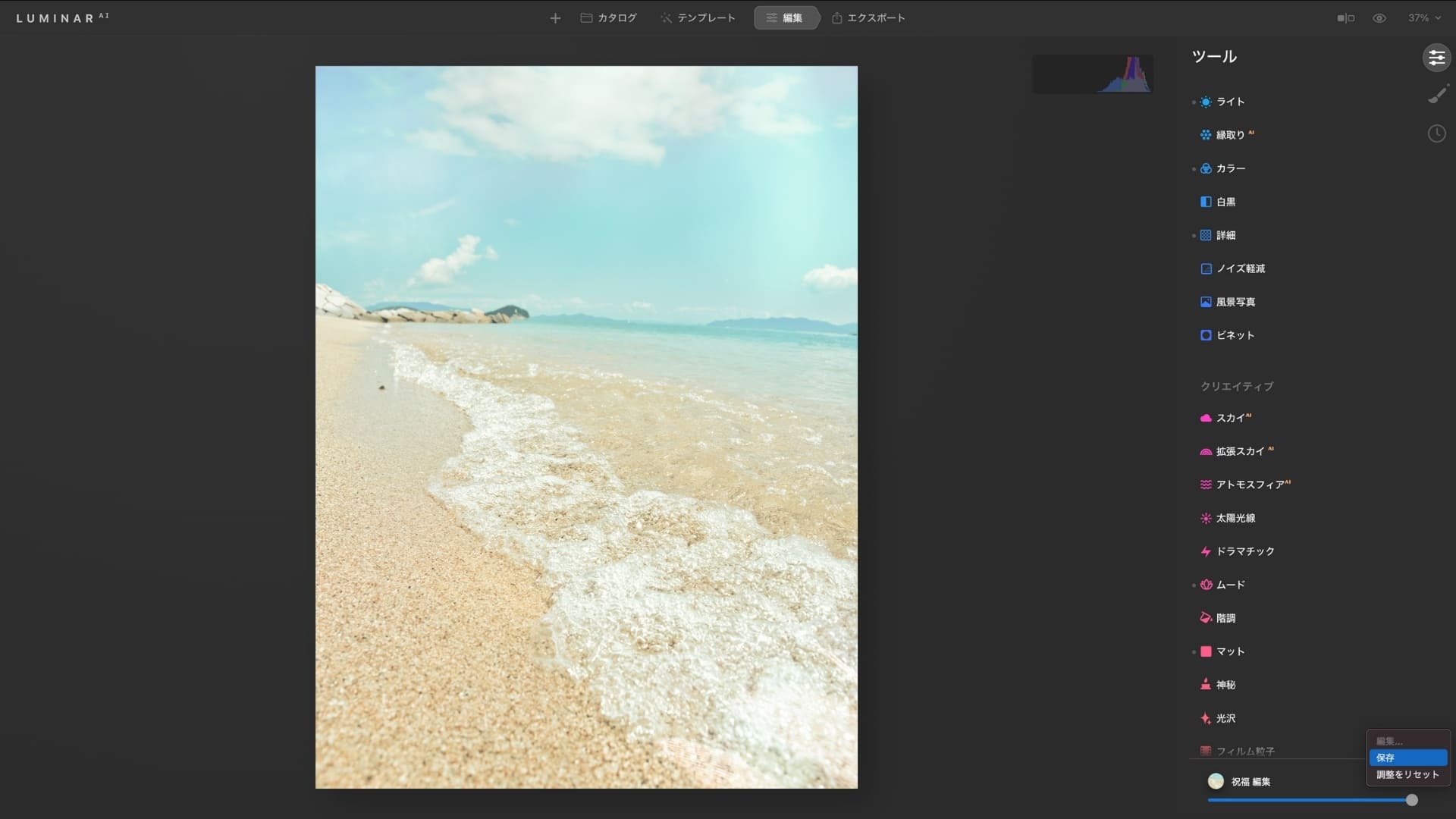 このカスタムしたテンプレートを保存できれば、他の写真でもすぐに適用することができます。