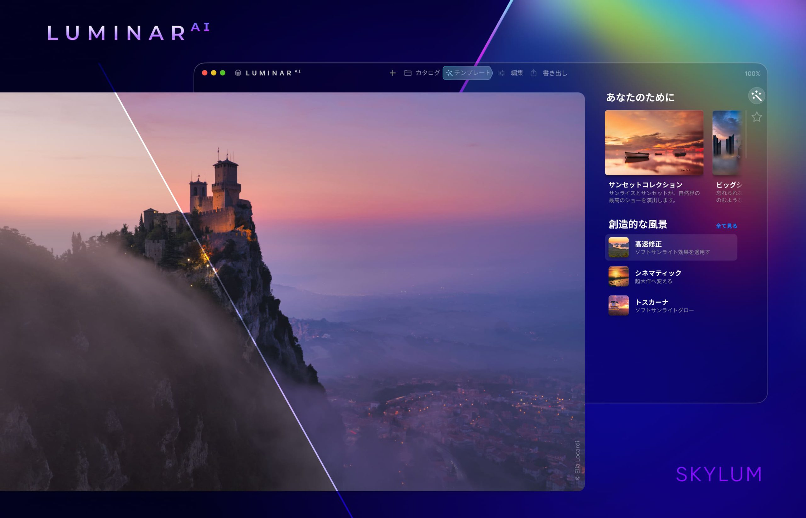 シンプルな操作性で編集をしたい人は、ルミナーAIがおすすめです。
