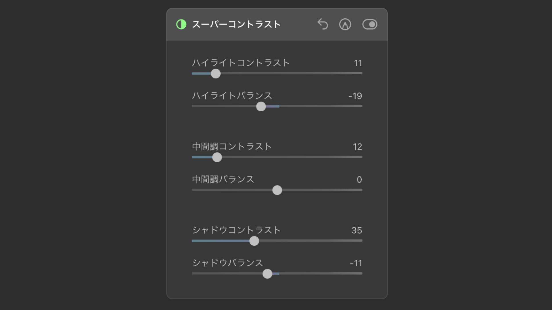 スーパーコントラストは、文字通りコントラストを調節するツールです。