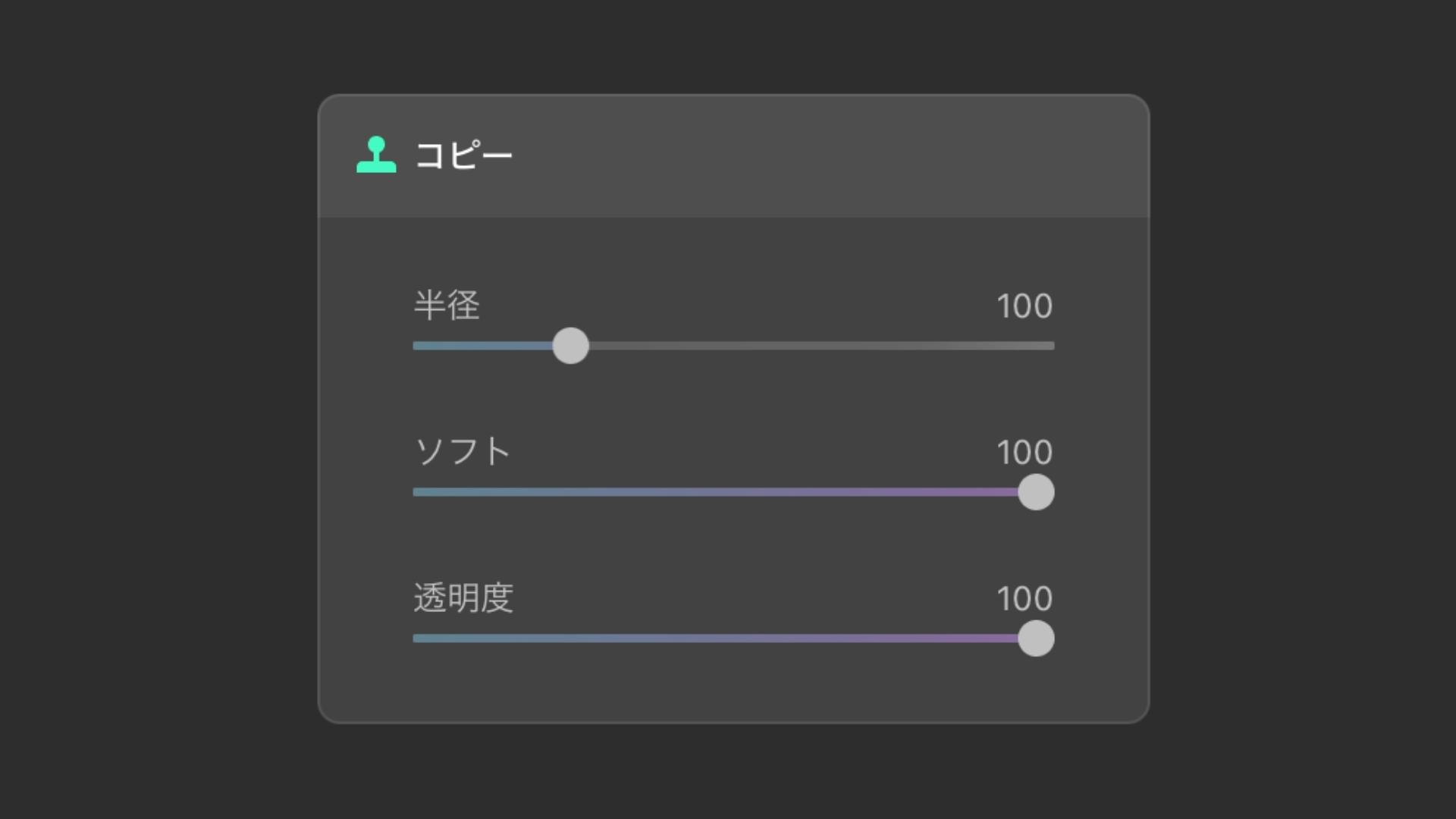 コピーは、ブラシを使って特定領域をコピーすることができます。