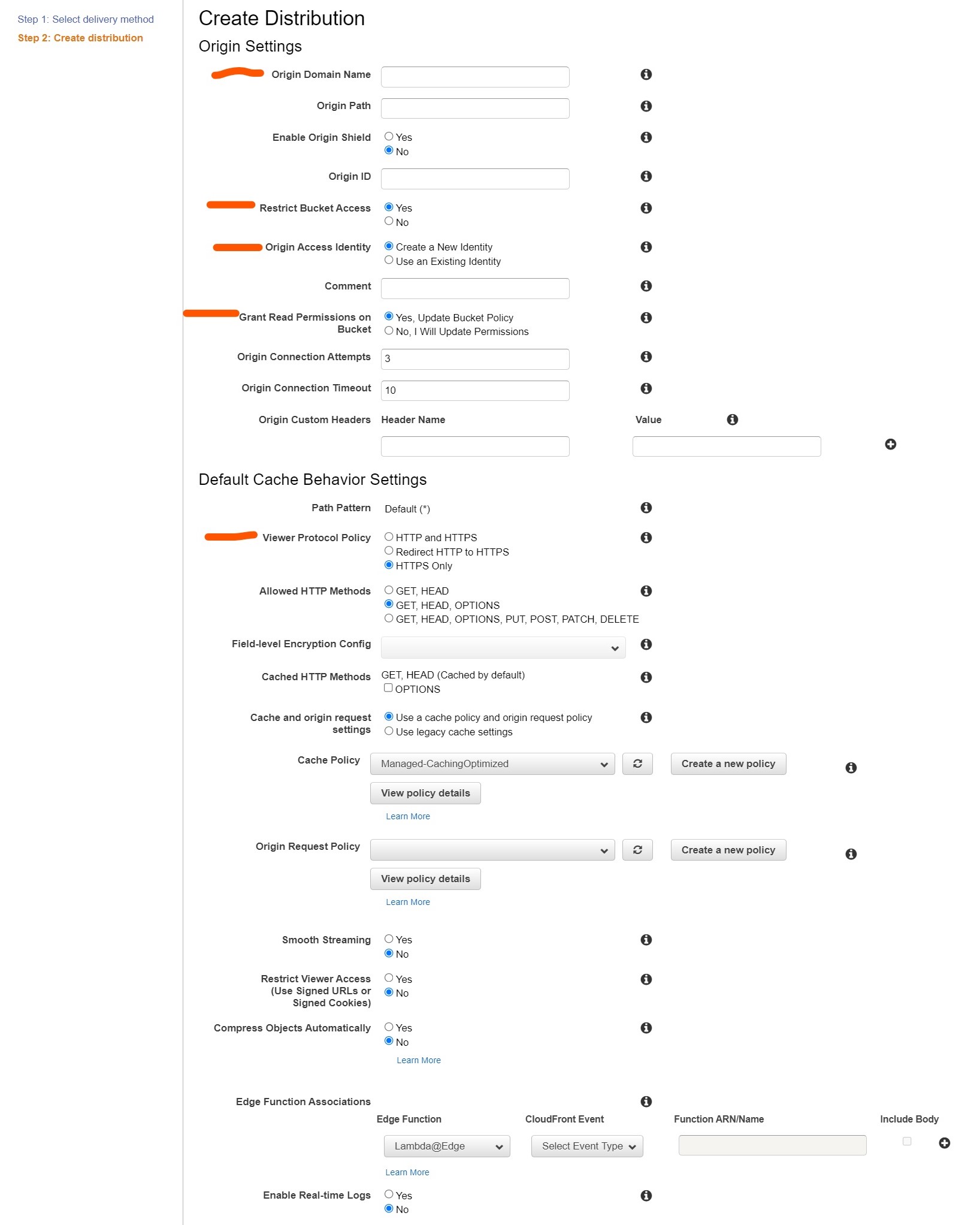 最初のOrigin Domain Nameには、作成したS3のバケットを選択してください。
