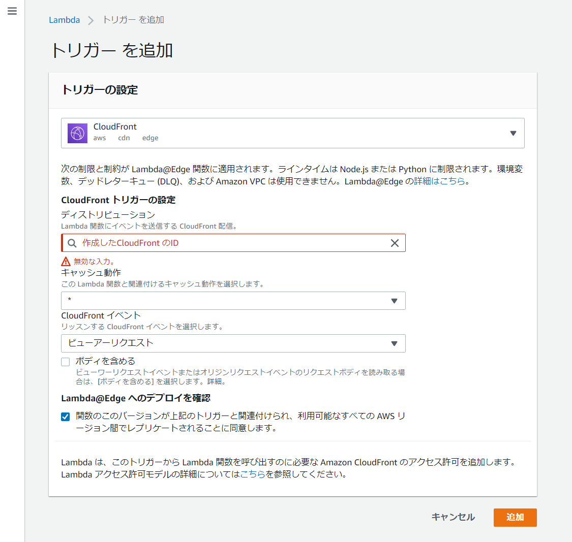 URL正規化には、Lambda@EdgeによるCloudFront+S3 のDefault Object設定 を参考にさせていただきました。